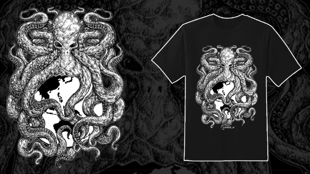 Design inspiration from sea monster legends, manual drawings on paper in jpg, png, psd formats. Different designs for your merchandise.